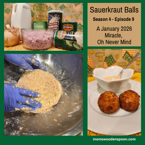 Okay, speaking of dads, how how does Chuck Norris play golf? I don't know how he stares at the ball and the ball goes into the hole to hide. That's funny. That's cute. Okay. Are we Are we going to move on now for a little bit? No. No Yes, we are. Yeah, let's move on. I'll just keep hitting you with them. So excited. Oh, you're so rude. Okay. I must have 30 of these suckers . Oh my gosh. Well, Carrie, back to the balls here. I think we should probably cut this recipe in half because here's what the original recipe contains. 1 and 1/4 pounds of ground ham, six eggs, five lbs of sauerkraut, and four to six cups of flour. It makes 96 balls. Yeah, I noticed the makes 96 balls, and I thought, huh, that's a lot. So, I think I think uh cutting it in a quarter would have worked as well, but I have great. Didn't we make ham balls along? We did. We did. They were actually tasty. Were they? Yeah. It was like Yeah. Wasn't there like Was there a mustard dip or did we do that for something else? We made mustard dip. Well, just recently we did. Yeah, cuz we went last season we went willy-nilly and made that yummy mustard dip for spinach balls. Yes. That was good. It was good. You know what? Speaking of dip. Oh, are you going to call me names? No. Oh, okay. Good. I did that last episode, I think. No, no. Sugar cream pie episode. I think I called you lots of names. That was mean. That was just mean. So, I was looking up sauerkraut balls and as I read it, it said it always comes with a creamy dip. And I was looking at our recipe. I'm like, well, there ain't no creamy dip on this recipe. And so then I thought, well, what type of creamy dip do you use? Mustard dip might be good, right? No, no, no. Apparently, most people serve it with Russian dressing. Okay. The creamy Russian dressing is very much like thousand island dressing. Okay. But it does not have something that you probably don't like. Pickle relish in it. Oh, I do love the pickle relish. Oh do you? I mean, it's like McDonald's special sauce. Yummer. Uh, yeah. But you're going to like something even better. Most Russian dressings don't have the pickle relish, but they do have something spicy in it. They have horseradish or chili sauce. We're doing horseradish. Yeah, we are. Yay. So, if you're okay with making the Russian dressing, I think all balls need a dip. That was not one of the jokes, people. That was just me talking. Got halfway through it, realized what I was saying. Gosh. But I do think it's true cuz I, you know, could be dry. They can. Sorry about the crinkle. Oh, god. It didn't mean that. I know. This is why we laugh every time we make the balls. Oh, lordy. Well, I'm just going to chop the onion while we're talking because we have to add in finely minced onion into the balls and into Russian dressing. So, I figured I'll just get started on that. That's going to take a long time. I really appreciate is that she has not asked me to help in any way, shape, or form. Are you kidding me? I know my sister. Finely, mince, please. Okay. So, I wanted to cut this very finely, but it requires concentration. Yet, I am afraid that in doing so, Carrie will tell us more ball jokes. Oh, okay. No, no, no, no, no, no, no. I have some stuff that I could talk about. Yeah, but I don't want you to hurt yourself. This is me caring about you. Gee, thanks. Uhhuh. No problem. Okay, so let me find a good one. Oh, boy. Um, let's see. Oh, I have a a story. Oh, a story. Yes. Okay. A man entered the bus with both of his front pockets full of golf balls and sat down next to a beautiful blonde. Yeah. Okay. We'll pause on the story. For this to be funny, the person that this man sits down to does not need to be beautiful nor blonde. Oh. So, you can replace that individual with anybody that you want. Okay. Okay. The puzzled blonde slash brunette/ anybody you want. Yes. Yes. Kept looking at him in his bulging pockets. Oh gosh. Finally, after many side glances from her, he said, "It's golf balls." Nevertheless, the blonde continued to look at him for a very long time, thinking deeply about what he had said. After several minutes, unable to contain her curiosity any longer, she asked, "Does it hurt as much as tennis, elbow?" Oh no, that's funny. One of my favorite. Speaking of golf balls, that's exactly how people described these um sauerkraut balls. They said that they need to be about the size of a golf ball. Okay, this is the description. Sauerkraut balls are golf ballsized morsels of sauerkraut and protein. Ham, bratwurst or sausage. ooh bratwurst sounds good. Breaded and deep fried, then served with a creamy sauce. Oh well, cuz that's what you do. Yeah. So, I had told you that I had seen in the if you live in Akron, you'll understand these things website that I did not understand. They mentioned sauerkraut balls as I said. Yeah. And Jojos. Jojos. Yeah. Specifically, what it said is sauerkraut balls and Jojos are basic food groups. What? What's that? Is a JoJo a food or a place? It's a food. Okay. I looked it up. I went and it down, which is really unusual. That is so rare. So, I can Oh my gosh. Wait a minute. This is like a January 2026 miracle. Yes. I'm going to reference something and follow it up with detailed information. Oh my gosh. Your New Year's wish has already started to come true. I think it's a turning point. I'm sure it's not. I am sure we will find something else that I did not research thoroughly. It's just the beginning, Kristen. That's true. Give me time. Give me time. Okay, so Jojos, you're going to be so disappointed really when you hear what they are. They are thick cut seasoned potato wedges. that are breaded and pressure fried until they are crispy on the outside and tender and fluffy on the inside. But wait, I have more facts. Okay. And I was going to ask you what pressure fried was, but then I didn't want to ruin the whole Carrie did enough research. I absolutely did not look up I knew it. What the heck? No, but I did look up the origin of the the 