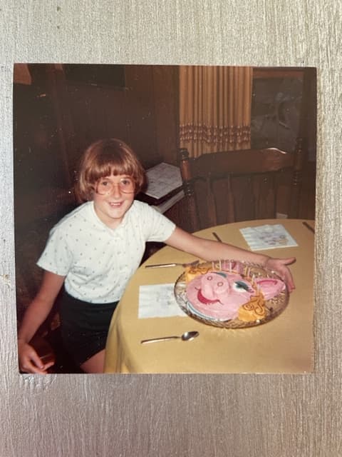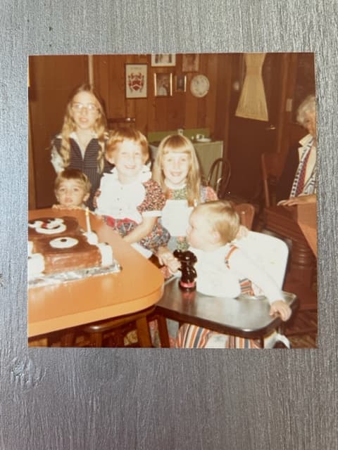 remember how I said this cake is moist well it makes a very moist sound when you stir it oh yes yes it does the cool thing about this cake so many things are cool about this cake is that so you don't have to grease and flour the pan no you don't have to grease it at all there's so much oil in the cake that yep and we're just going to throw it into a 9x13 pan yeah I mean it's the same pan that our mom used for all of our birthday cakes absolutely decorated fancily on the top or would cut them so that the 9x13 became the shape of the number one I was looking at old pictures and mom made me a hot air balloon cake a clown cake yes I think you had a Raggedy Ann cake I don't remember that one red licorice hair oh wow cool why do I remember that I don't know I had a Miss Piggy cake oh I loved Miss Piggy and she was pretty crafty with cutting those cakes up she did a great job yeah or we'd have a one of these nine by 13 sheet cakes and she would just draw she drew Kermit the Frog on one of mine and it looked exactly like it wow like him she was really good do you remember any of the ones that you had I didn't find any pictures of those I don't think she loved you