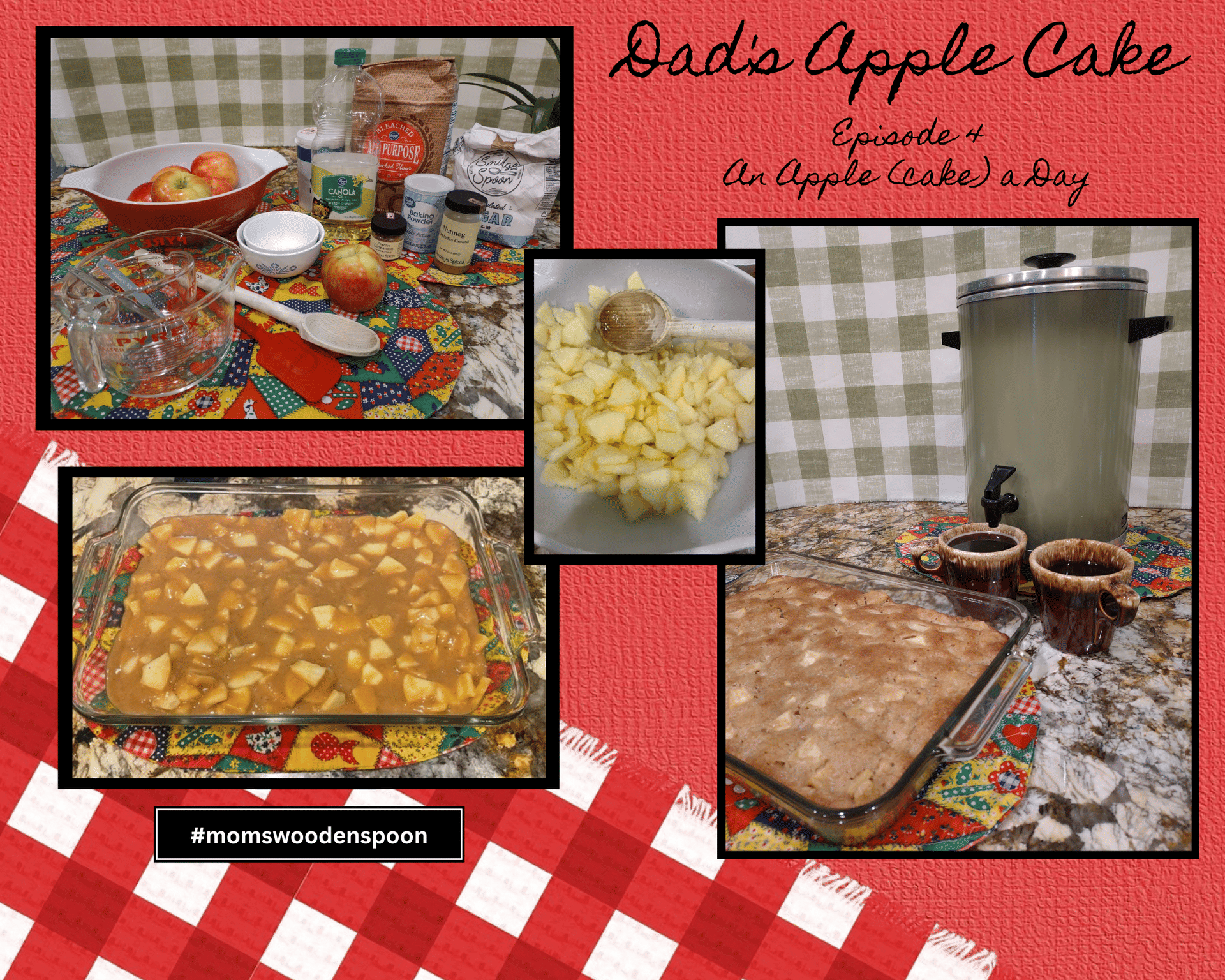 Kristen I am so excited about this week's episode oh really why is that while we are highlighting Mary's Memo it is not for the recipe instead we're going to focus on a lifestyle tip that inspired a recipe so I guess that you could say today we're going with a theme ooh I love a good theme what is it it's apples oh you mean like an apple a day keeps the doctor away oh exactly but better today it's an apple cake a day I love that let's do it welcome to mom's wooden spoon get your apron on and your fanny flicker ready as we cook up some nostalgia ooh yummy hi this is Carrie and this is Kristen and welcome to National Apple Month woo hoo we love apples so looking through Mary's Memo we are going to deviate a little bit and we're going to do a recipe that is not included in a memo but it is inspired by the words of Mary it definitely is and it is the best recipe ever oh I'm so excited about the recipe I can't even tell you okay so the Mary's Memo we're working off of is from March 21st of 1977 and the reason that we picked this one is because it starts with an apple a day may keep pounds away ooh I could use some of that we decided to change it up a little to an apple cake a day um yeah which is not going to keep pounds away it will not but it'll taste so much better it'll make me so happy it brings back such great memories so the recipe is our father's favorite cake of all time oh yeah you cannot go wrong with dad's apple cake never it is a birthday cake a coffee cake an anniversary cake I'm hungry and I want some cake oh my gosh my daughters are visiting I need some cake cake yes yeah all of those things but so to divert back to the Mary's Memo and what kind of started all of this is this kind of not even a diet is at all what she presents I think it's like a healthy eating tips kind of a way to get you started being more in the moment you know to think about being present as you eat foods because you know I probably starting in the 70s with tv dinners and watching tv as you ate and my goodness we certainly do it today we watch tv while we eat or we sit on the couch and eat yes we are not in the moment enjoying that food and recognizing the food that's in our mouth not at all and so Mary not a fad diet no not um she picked one and I'm going to tell you it is called the Better Than a Diet Program and the long and the short of this Better Than a Diet Program is to take an apple every day and be one with the apple smell the apple cut the apple peel the apple now smell the apple again then taste the apple but only a tiny bite what do you taste what are the aromas of the apple it is you know basically spend 15 minutes with this apple eating recognizing in general the idea is just as you said pay attention to what you're eating I remember back when we were kids our Aunt Sandie did that diet where well it wasn't really a diet she said chew every piece of food a hundred times every time every time yep you know she was serious dinner was cold by the time we finished eating dinner after trying that but it was another way to kind of think about what you were eating yes you know as we're talking about diet plans or you know eating plans I actually found this article online that was written by a woman very recently and it was called I Ate Like a 1970s Housewife and Here's What Happened I saw that and I didn't open it oh I'm so glad you didn't because it is the craziest fad diet I've ever heard of it is basically eggs wine and steak oh my gosh it is called The Wine and Eggs Diet did you look it up too not through that but it was absolutely a fad diet of the 70s oh my gosh this woman said she was so drunk and so sick at the end of every day she goes you know I drink wine I eat eggs and steak but just nothing but wine and eggs and steak she had to give it up how could you not so what I read is that you started with an egg and a glass of wine and then you had whatever they dictated for lunch and a glass of wine and then you ate again whatever they told you to and the rest of the bottle the rest of the bottle one bottle allowed per day it said yes an entire bottle of wine each day and no carbs to kind of soak it up that's right so it's breakfast is one egg hard-boiled one glass of white wine dry preferably Chablis oh and black coffee lunch it gets even better two eggs hard-boiled is best but poached if necessary that makes a difference I don't know now wait a minute two glasses of white wine at lunch imagine if you were at work no you couldn't do this no this would be a housewife although in the 70s I don't believe it was incredibly uncommon to have the booze drawer at work true our dad had a candy drawer well he was a school principal so no booze drawer no but I like the candy drawer a lot better than a booze drawer yes you were six that's true that's true all right and then dinner is a five ounce steak now specifically grilled with black pepper and lemon juice oh delicious remainder of the white wine and more black coffee wow so kudos to Mary for doing a well-balanced non-fad diet because I will tell you there was no shortage of fad diet options in the 70s no not at all I think our mom did every one of them I have no doubt yeah yeah I remember her and I could not find anything about this mentioning to me recently that she did one that you took your most favorite food in the world and you opened it and you smelled it and you licked it and then you put it away oh but like within sight torture yes I do have another fad diet I have two oh I can't wait to hear about it I feel like I need to tell you I think you do and I feel like I need to tell you before we start measuring sugar well because they're a diet that's right so let's get the diet part over with so then we can make the world's best apple cake right which you should have one of a day forget these diets you really should and folks this is one recipe you are going to want to go to our website and find every time we make this oh it's a hit it is a huge 