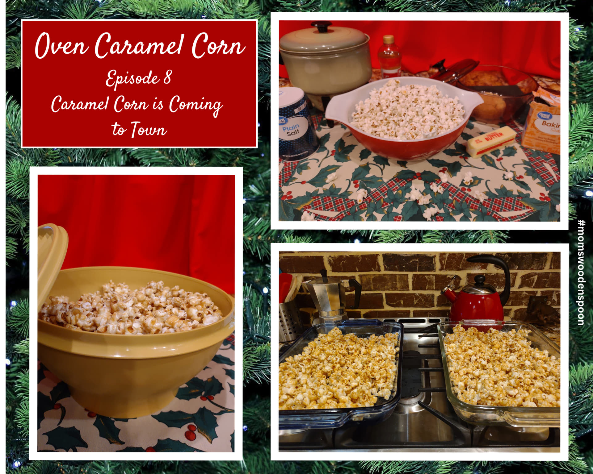 what food always makes you think of the perfect Christmas day oh there's so many let's see that book of Lifesavers that we always got in our stocking ooh a yummy breakfast casserole to start the day and let me see oh yeah candy canes oh yes I remember all of those but today's recipe is not one of them today we are going to make the ever popular Christmas caramel corn oh okay we'll let the festivities begin welcome to Mom's Wooden Spoon get your apron on and your fanny flicker ready as we cook up some nostalgia ooh yummy