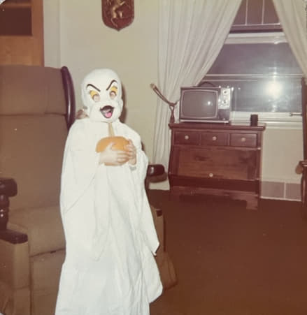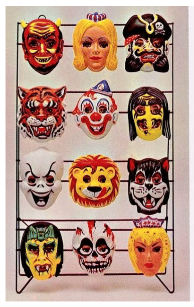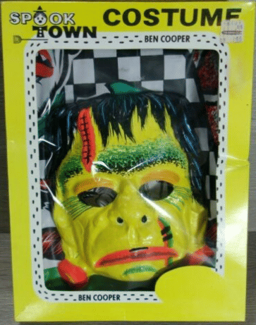 that was good marketing yeah and then the costumes were like those plastic things it was like wearing a plastic trash bag it was with just a picture of the mask and so you're Frankenstein and you have your yellow Frankenstein mask no hair um on that and then your plastic little get up shirt with a picture of the mask on it and Frankenstein in case maybe the person is like well I do not know who you are I will not give you candy let me interrupt you real quickly in what universe is Frankenstein yellow I don't know