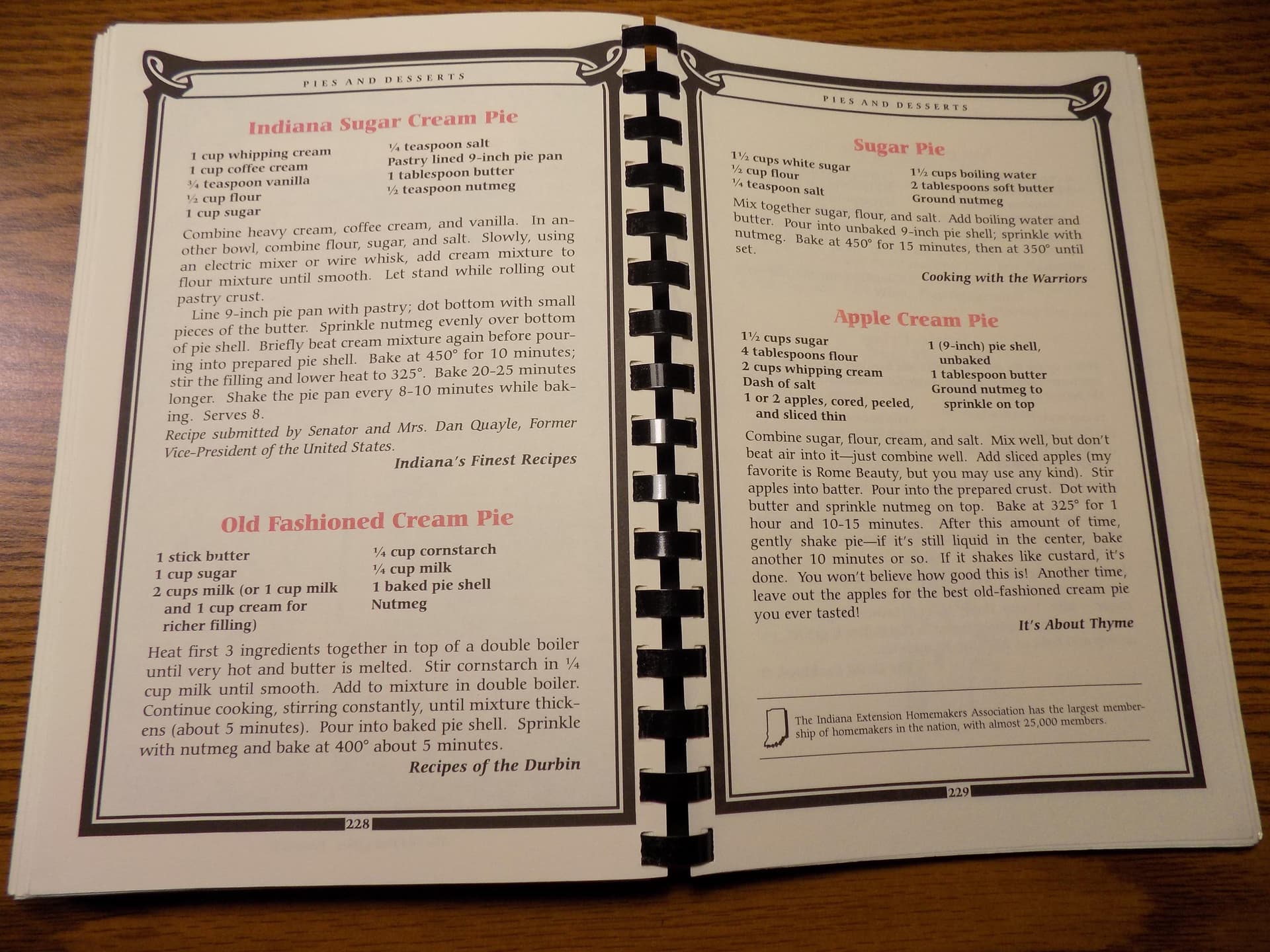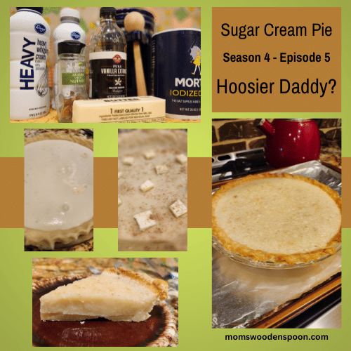 What? Their state beverage is water. We're very well hydrated group. Not caffeinated, just hydrated. I thought that was so funny. I liked you working it out like, "Oh, it's got to be something good." Yeah. Yeah. It's water. That's weird. Yeah. And then, as you probably know, the state nickname. Oh, of course. The Hoosier State. Yeah. Do you know why it's the Hoosier State? No. Okay. So, I didn't write it down, so we're usual. Never never good. Yeah. But apparently there was a homestead back in the day when they would, you know, where people were moving from the coast uh west. There was a specific kind of home that they would build. Yeah. Called a hoosher. H O O S H E R. And they think that they were used a lot in Indiana. And the hoosher became hoosier. That's super cool. Yeah. They don't know that for sure. And I might have thrown in some creative licenses to that story because that's what I do. So just because you heard it here on Mom's Wooden Spoon does not make it factual. If it comes out of Kristen's mouth, it's a fact. She has double checked and triple checked and quadruple checked. If it comes out of Carrie's mouth, oh no, willy-nilly. Maybe, maybe not. Correct. I saw it. It was interesting. I read it. I may or may not remember it correctly. That's great. Maybe she saw it in a dream state. It's possible. A lot of those. I have a lot of dreams. Fugues, we like to call them. Yes. All right. So, this recipe is from a cookbook. We found this online. So, I didn't get to see the cover of the cookbook, but it apparently is by the Indiana Extension Home Makers Association. And you know, Mary loves her homemakers. I mean, that seems perfect. Can you imagine how many recipes they must have gone through? Oh, yes. To pick this one. I mean on this page alone is Indiana sugar cream pie, old-fashioned cream pie, which is what I get at mom's in Archbold. Okay. Sugar pie and then and other stuff. Yeah. Cream pie. Interesting. So they did more than one. Yeah, they did. Just called them different things. Called them different things. And the one we chose happened to have been given by Senator and Mrs. Dan Quayle. Oh. So, that was a good choice because they're famous. Exactly. Are there potatoes in it? Well, was that tomato? No, I think it was potato. Oh my gosh, that's rude, Carrie. Um, and so I looked it up. Dan Quayle was actually in the US Senate from 1981 to 1989. So, I figured this is a good 80s recipe that we're going to use. Okay. All right. We'll call that. I mean, it may have been in the Quayle family for decades. We don't know. But there's no eggs in it, so it's not wrong. That's correct. Correct. Okay. So, it's an interesting recipe. I'm going to pick it up because it's very small print and I'm old. Yeah. Yeah. So, we're going to combine heavy cream. Okay. And something called coffee cream. Oh, I had to do some looking up of that. Yeah. Is it the cream that you'd put in coffee? So, like half and half. Yes. Some people say it's half and half and other people called it light cream. And I thought I've never seen the likes of light cream on the shelf, right? And so, I did look for light cream and couldn't find it. So, here's what I did. There were two kinds of whipping cream on the shelf. There was just whipping cream and heavy whipping cream. So, I got the heavy whipping cream and I got half and half. Well, this was a lot of work. I was It was stressing my brain. You stood in the dairy aisle for quite a while. I did indeed. And then we're going to mix in some vanilla. Only a 1/4 of a teaspoon, which seems like way too little for me. And we're going to then put in some flour and some sugar and of course some delicious nutmeg and some butter cuz butter makes everything better. Absolutely. But then there is a really weird direction on here. Okay, let's hear it shake the pie pan every 8 to 10 minutes while baking. Interesting. Yeah. Okay, so I have a question based on some research that I found. Okay. How do we mix these ingredients? Okay. Right. So, it said either using an electric beater or a wire whisk that we'd mix them. So, first we're going to mix the dry ingredients together in a bowl. We're going to mix the creams in another bowl and then we're going to whisk them together. Together. Okay. Fascinating. Apparently, yeah, that is a I'm going to say a bone of contention amongst sugar cream pies. Really? Yes. As to how you mix it and various recipes call for various things. So, for example, some of them you have to cook the filling on the stove top first. I did read about that. Yes. So, that's common. Well, this is a no cook, which is kind of nice for us. Okay. Yeah, that's good. Some of them you just put the uncooked filling in an unbaked pie shell and bake the whole kit and caboodle till it's done. It sounds like that's what we're doing. Yep. And one of them is you put the dry ingredients into the pie shell. Oh, you pour in the wet ingredients and then you use your fingers to mix it all together. No way. Yes. And this is all important because sugar cream pie goes by a million names. Yes. One of which is finger pie. You still mix it all together with your fingers. I'm going to start calling it finger pie from now on pie. When we go to mom's and Archbold, y'all got some finger pie. I think that'll be great in a southern accent like that. like you stupid southerner. What the heck's wrong? What do you want? And we don't have any of that sweet tea either, you know? Oh my goodness. I thought that was really interesting. And so there are a couple other names. Obviously, sugar cream pie. Yes, this is an Indiana staple, so it's also known as Hoosier pie. Pie, which I think is funny, like Hoosier daddy? Hoosier pie? And then transparent pie. I don't know anything about why they call it that. That was because it's not transparent. That was just one of the things I found. What's the opposite of transparent opaque? Okay. All of a sudden my brain I was gonna say I knew something Kristen didn't. It's opa