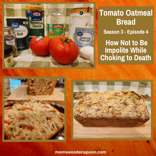 Thanks to our Scottish Heritage we are oatmeal lovers in this family that is very true so what type of things do you like to put on your oatmeal I like brown sugar and milk and a boatload of butter ooh well today we are going to be mixing in basil Thyme and tomatoes what do you think about that no thank you [Music] welcome to Mom's wooden spoon where the recipes are retro and so are your hosts you can say that again [Music] today we are making a Mary's memo recipe from August 31st 1981 All righty that was real slow Carrie real slow I was rolling through I was like is it is it Mary's Memo from 1981 well yes it is yes it is it is called tomato oatmeal bread yeah so I think this is either going to be delish yeah or yuck yep and then the next question I have is when do you eat tomato oatmeal bread yeah with what or not a sandwich bread no because I think Mary says you have to cut it thick or it crumbles all over the place interesting it's a quick bread it is so no yeast yay that's right yeah so do you have it for breakfast do you have a frittata and tomato oatmeal bread can you make toast out of it I don't know it's really interesting avocado toast on tomato oatmeal bread now yes I'm all for that and to pull all of this season's Mary's memos together in a pretty little package yes we could add sauerkraut onto the top yes not one bit no thank you well you know what makes this recipe special is it's from Mary's daughter Maryanne yes and so maybe I should just message Maryann and ask her when did you eat how did you eat this I think that's good although I'll be honest when I read the Mary's memo yeah I felt like Mary maybe threw a little shade at Maryann I thought it was funny her actual description of it was it is unusual but good yeah the beginning is an interesting quick bread to make and I was like well that sounds pretty shady yeah I know I kind of like it's unusual but good because that's how I think of our podcast speaks to me yeah so I've been practicing my cool current lingo lately and so I I believe what Mary's really saying is uh this recipe is no cap that's ridiculous and here's what's the opposite of that I've been watching this guy on Tik Tok I just started following him because he has been talking about Gen X lingo yeah and so Mary might have said this is going to be grody to the max ah yes was 80s yeah she would have not said my daughter's got riz no or skibbety toilet she probably would have said you think this is Ohio but it's not but it is Ohio oh look at that pun intended O M Gosh I don't think that's really a pun but I am pretty sure she did not say O M gosh but Lenny picket did she she didn't O M gosh we call it Elmer fud pucker cake okay Kristen liked that so much that ever since we recorded that she is 100% oh my gosh totally O M gosh oh sorry O M gosh because oh my gosh I mean that's fine right yeah O M gosh it's the best I lurve it yeah yeah you're not with me I hear it a lot okay so the tomato bread is basically just flour and then all the other ingredients used to make bread other than yeast you know we have baking powder Salt sugar cause it's a quick bread yeah so baking powder or baking soda baking powder and then it has parmesan cheese yum yum yum and it has Thyme and basil in it and then we have to peel and deseed ed two medium potatoes no I can't say words potatoes it's not potato bread that's going to be a real interesting bread I have never deseeded a potato I have never seen the likes of that we're gonna deseed these tomatoes and we thought we got medium tomatoes but as you heard in our last episode yeah I think they're large I think you're probably right maybe one and a half so I'm thinking you know when you get tomatoes on the vine oh yeah those might be considered 1980s medium and in which case maybe one one I don't know maybe this one looks a little bigger maybe we'll just do that bad boy that's that's wild it is I just that you know produce produce has changed everything's bigger yeah yeah and we got two pies so am I out of those apples yeah everything's bigger welcome to my world all right so we're gonna go I don't there's a word here then I would like to use it shrinkflation we're gonna go shrinkflation on this tomato oh Carrie and again the recipe is a portion at the bottom of the left row and then the rest of it is on the top of the right good news yeah you're not gonna confuse this recipe with the hot dog recipe or the Hawaiian spare ribs recipe and she calls them spare ribs Hawaiian I felt like she should have put a comma in there that's right yeah a little Dash what do they talk about people of Our Generation and ellipses oh yeah I love those dot dot dot spare ribs dot dot dot Hawaiian oh that sounds good that sounds real good though we ain't making that okay so we are going to have to oil the bottom of a 9x5 by 3 in loaf pin Okay so we've already varied from the recipe we did vary from this because it asks for oiled waxed paper and Carrie lost her crap I did I think we've said this before you don't bake with wax paper because it's not made to bake with and the wax separates from the paper yeah and so then we thought okay eww yeah eww and I know this to be true because my husband put waxed paper down on a a cookie sheet think that's what they call it and we have wax melted to the cookie sheet that I can't get off so I know that the wax really melts off of the paper wow and so we decided to use parchment paper with Crisco yes right so I think that's perfectly fine yeah I agree okay Carrie agrees that's a good thing I like to be disagreeable just for fun she does she does okay in a large bowl we are going to stir together the flour baking powder salt and sugar and the oatmeal and then the parmesan cheese basil and thyme so basically everything but the wet did you get the good shredded parmesan cheese no it called for grated oh we're going for no it didn't it just called for parm cheese we're going for the cheapy grated okay it's all good you know wh
