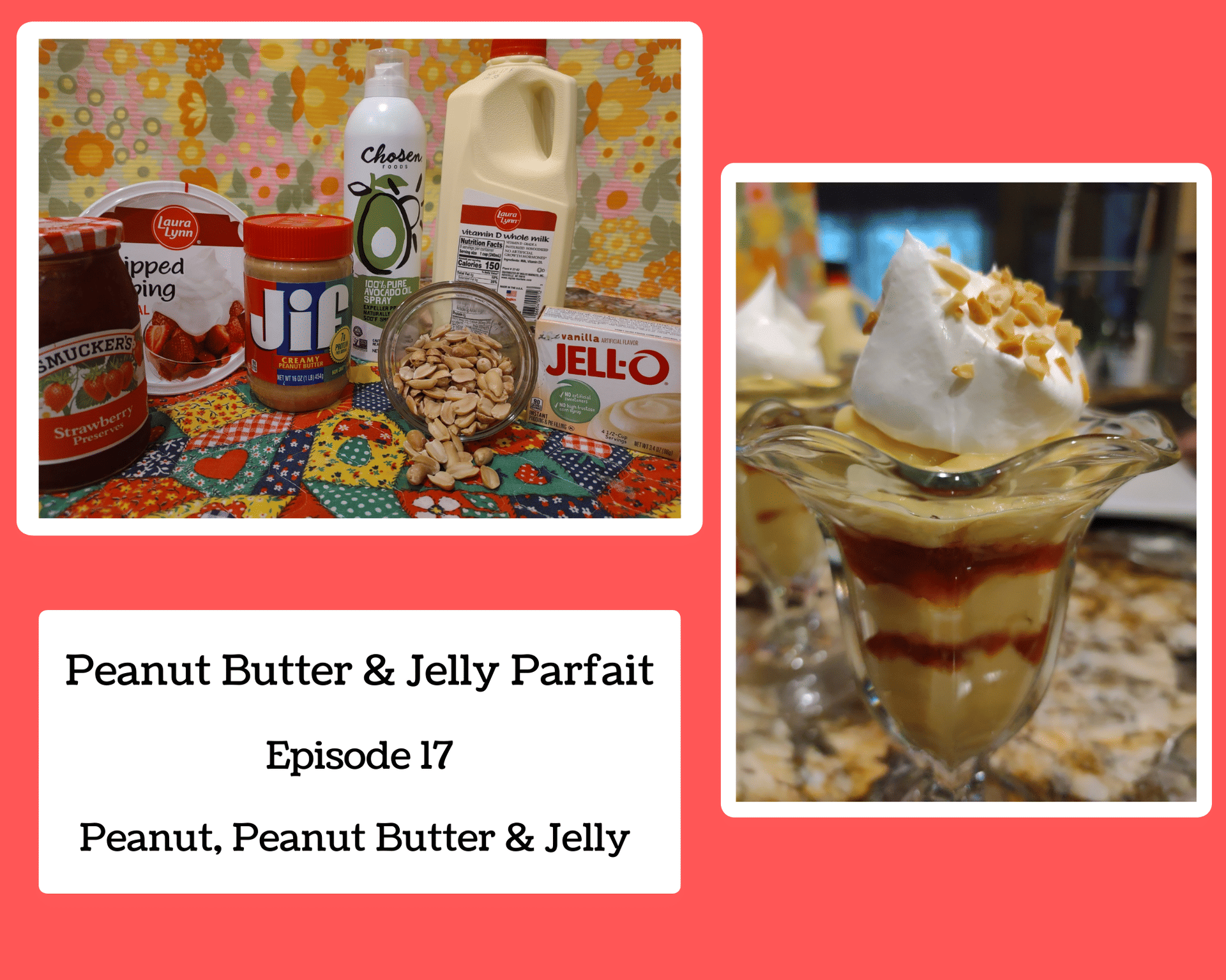 it was in the joys of Jell-O cook book just shoved in there by the previous owner what are the chances that's incredible that after decades of searching for that your sister would save the day that is why this podcast is meant to be things just keep happening like this it's so awesome that was super fun yeah and you know I remember the cover it's a little boy with a kind of reddish hair Freckle face and eating a scoop of Jell-O I remember that like it triggered something in my brain he looks a little like Ricky Schroeder back in the day maybe he just looks like Ricky Schroeder and that's what I remember that's right but I I swear I do have a memory of seeing that little flyer oh my gosh so exciting so you have not eaten this since you were six years old and disappointed all the adults no so as an adult eating this we're gonna really get to see why so this recipe goes in a parfait glass so it's pretty it's kind of stripy yes yep and so basically you make instant vanilla pudding and add some peanut butter to it sure and then in my mind trying to remember it back through all the years I thought you then made like grape or strawberry Jell-O and the layer was a Jell-O layer in between the pudding layer but that's not it okay you actually take jelly and water it down a little bit and kind of drizzle that on top of each layer of peanut butter pudding yeah I'm feeling like I already understand the adults in this scenario maybe it will be delicious maybe it will be you know and I see here that you have beautiful parfait glasses and I'm so impressed why thank you I inherited those from my mother-in-law and we haven't used them in well decades well I mean so this is perfect gives you a chance to pull them out that's right I like it okay so I'm gonna boss everybody around because I'm sure that's what I would have done at six you'd have bossed me around for sure I will do the jelly and so the jelly is a quarter cup of strawberry or raspberry preserves mixed with a half a teaspoon of water to thin it out a little bit so that'll be interesting which one did you go for strawberry or raspberry I went for strawberry because I figured that would have been what me as a little kid probably would have chosen probably and most likely what Aunt Sandie had in the house oh right so Carrie do you remember the jelly they still make it the jelly that was striped with peanut butter that goober it was called goober do I did you always want that so badly me too and Mom would always say it's not enough it's overpriced and you don't get enough of what you wanted it was even quantities of jelly and peanut butter right I personally put on twice as much peanut butter as I do jelly I think I remember her saying well you're gonna run out of the peanut butter yeah and just be left with this kind of gross jelly right which was a bootleg answer as far as I was concerned I mean I wanted that badly lets try to find out mom yeah Mom yes let's not just say no before we know I know gosh Debbie Downer also Carrie do you remember what type of peanut butter we always had at our house extra crunchy yes I don't think it was until I moved out of the house that I actually had creamy peanut butter I don't think I did either now here's a fun little tidbit ooh tiddly bit it has to have been three months ago I said something to my husband we have had creamy peanut butter in the house since the day we've been married yeah we both eat quite a bit peanut butter and I said you know the last time I was at home I had some peanut butter it was of course extra crunchy it was so good crunchy peanut butter is my favorite yeah and I would love maybe the next time we buy some to just get crunchy for once yeah and my husband looks at me and he's like I love crunchy peanut butter the best why have we been buying creamy for the last 10 plus years it's neither of our favorites no how did this even happen that's so funny we both bought creamy because we thought it was the favorite of the other person oh so either you're very very poor communicators or you're just so thoughtful of each other's wants and needs oh totally the poor communicators so the way this recipe goes is you just kind of layer the peanut butter pudding with the watered down jelly it really isn't watered down that much I'm going to be surprised if we don't end up needing more of the jelly you know oh yeah how many parfaits is this supposed to make well it's supposed to make four I thought there's no way it's going to make four in these big parfait glasses but they're kind of narrow okay so I would agree looking at it we'll give it a try and I'm gonna start chopping some peanuts because that is fancy for a garnish yes well I wonder if you did that when you were six I'm probably not chopping them with a large you know chef knife like you are now right maybe we just left off the chopped peanuts and that's why the parfait wasn't as good I think we figured it out for sure I think we have yeah and of course you have to top it in the 1970s with good old Cool Whip oh because it's the best oh yeah so how many tablespoons of peanut butter have you put in it said two to three I went with three it's already in yes ooh this is exciting so I guess we can start building our parfaits how about you put the pudding in and then I'll drizzle the jelly on the top and then you put more pudding and we can kind of do two of them at the same time all right and according to the picture it is three layers of pudding and two layers of jelly okay perfect let's try this so peanut butter as I've discussed one of my faves I like to eat it multiple ways I like celery oh yeah celery you used to uh you do something with your son right oh yeah celery with peanut butter and raisins ah it's called ants on a log where have you been you lost me at the ants but yes so on celery delicious my husband loves to melt it and then put it over ice cream oh gosh that's interesting I bet that's yummers yes I always know he's done it because I f