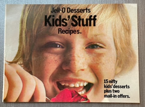 and in my little six-year-old brain I knew and they hated it oh so you went for the highest of highs yes to the lowest of lows I did so let's go forward in time to this past July oh lets you gave me I did an awesome birthday gift I did because I'm an awesome sister you found the joys of Jell-O cookbook from the 1970s I did it was at a thrift store and I was like oh my gosh Kristen will not stop talking about this peanut butter and jelly parfait memory yes I've been looking for the recipe for decades yes and I thought well maybe it'll be in this 1970s Jell-O cookbook that's right so I pulled it out of the gift bag I'm so excited I did I'm looking through the pages looking for peanut butter and jelly parfait and a flyer falls out of it onto the floor and it looks super familiar and it was this 15 nifty kids dessert flyer and I opened it up to the first page and there was the peanut butter and jelly parfait recipe