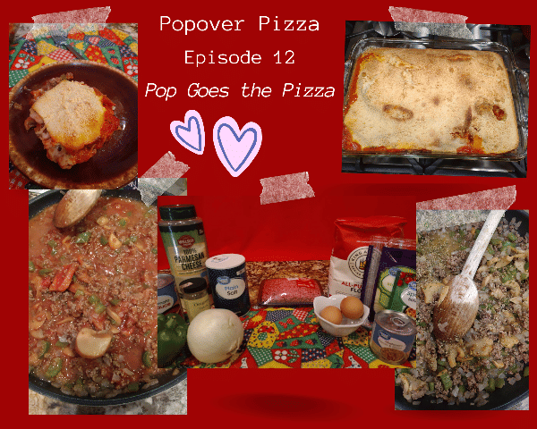 we have pop over pizza it is out of the oven we have our first slice dished beautifully up yep and man is there a lot of juice in the casserole dish it is pure liquid flowing out of the bottom right you know we let it sit for about 10 minutes and it's still just pure liquid under there it's really liquidy yeah I'm thinking that hindsight I would skip the water and the mushroom juice I would totally skip those I would think you'd want it to be kind of rich and thick well like the topping of a pizza yes which is not juicy liquidy at all no not at all and then the top of it looks like a moonscape or like Mars it does it does there's little volcanoes where you can see the juice pushed up through it yeah some heavy volcanic activity others are just vents of the steam there's craters in it it really looks like a planet landscape doesn't it yes but it did not pop up like a Yorkshire pudding does at all not one bit but it's certainly not flat on the top no but it's not fluffy either like biscuit consistency no it's not it's thin it is you know what it kind of reminds me of the outside of a Hot Pocket oh we're back to the Hot Pockets we are indeed oh speaking of Hot Pockets since this is kind of like one do you know they were not called Hot Pockets at first no really no they had a different name when they came out Chunk Stuffers shut up Chunk Stuffers weird that they thought that that wasn't going to sell well right okay I'm gonna take a bite is that good it is so good really take a bite there's a super cheesy side over here so I'm just digging in there it's so deliciously savory you know I'm underwhelmed really I think it has incredible potential maybe instead of tomato sauce to just put a pizza sauce in there but now that would be tasty now the crust is delicious with all that parmesan cheese toasted I think that's what tastes so good to me with that parmesan baked onto it it is salty and it has a great texture but you're right a couple of things to change no liquid from the mushrooms yep I would not add in the amount of water that it calls for and if you use a jar of pizza sauce that would also be a little bit thicker than regular tomato sauce I think and it would give you some additional flavors yeah but you know this is something we totally would have eaten at home in the 80s oh my gosh Mom would have made this and it would have tasted just like this oh yes and we would have loved it very much it's very reminiscent of those Chef Boyardee pizzas that she would get right we talked about that before how she would press it out on a cookie sheet until it was so thin you could see through it well and the crust would be almost as thin as the top on this the flavor she would always use ground beef onions and green pepper absolutely um it really is very reminiscent of the Chef Boyardee packages they came with Parmesan cheese they did that you could sprinkle on and then do you remember that Mom would often just put on slices of American cheese yes on top of the pizza and you know how American cheese bakes it gets all wrinkly and pulled on the edge and not visually appealing it was not visually appealing this is much more visually appealing yeah it has mozzarella which is delicious I think to 80 standards this is a tasty fantastic dish yes I think in today's foodie standards it needs zhuzhed up agreed yeah thank you all for listening it has been so much fun happy Valentine's Day please check out our website if you enjoyed what you heard we would love to get some positive feedback from you