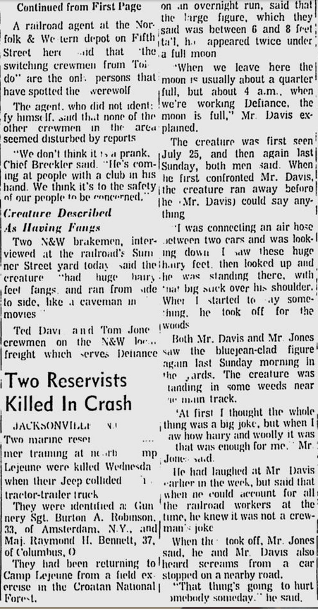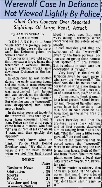 Just in case you thought we were making up the Werewolf story, here is the article from the Toledo Blade about it!