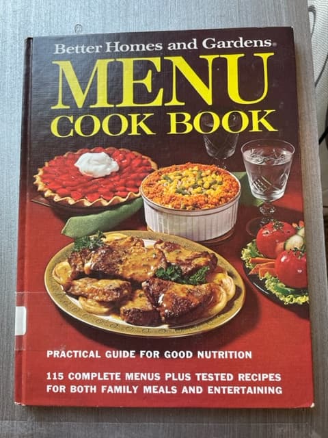 [Music] welcome to Mom's wooden spoon get your apron on and your fanny flicker ready as we cook up some Nostalgia ooh yummy laughs hey everybody this is Kristen and this is Carrie today we are going to be making pickled meatloaf yum Carrie picked this recipe out and it comes from the 1972 Better Homes and Gardens menu cookbook slash practical guide for good nutrition mmm thank you to our local flea market oh yeah yeah for that good find this was a great find so this is actually a twofer you know why it not only provides the original pickled meatloaf recipe and a menu oh yeah the menu I can see it it it's oh it's special oh yeah yeah it has your favorite so you'd have your pickled meatloaf for dinner right and then you would have Carrie's favorite buttered peas so is there a recipe in there for buttered peas because wouldn't that just be peas and butter right no recipe for the buttered peas all right good good the next part no recipe for this it's going to be difficult sliced tomatoes awesome along with those things that you don't have a recipe for right there is also potato salad right which you would think would be pretty normal yeah I'm looking at the recipe Carrie it calls for frozen french fried potatoes huh so they use frozen french fries to make this potato salad but it gets worse you boil them huh I know I'm trying to conceptualize that um it says carefully drop frozen potatoes into water and then remove from heat immediately cover and let stand four to five minutes okay so instead of roasting you're just gonna quick do a blanchy boil just to heat them up I don't know but I thought that frozen french fries were kind of pre-cooked I thought they were already fried exactly so I can't imagine maybe you boil them to pull some of the oil off I don't know I don't either boy if you guys are interested in us trying that recipe season two right you must let us know that would be an interesting one because I'm really interested in it so guys please go to our website leave us a message if you are interested in us making potato salad with boiled frozen french fries so this menu even continues telling you that you need to have hot rolls sure butter yeah you didn't know that right um and then it suggests the beverages you should drink coffee and milk all right perfect and then for dessert sundaes oh I know we did not in the 70s have desert at every meal we sure did not not one bit okay so that's the menu for this original pickled meatloaf right and you said there were two there are so then you go to the back of the cookbook and under the meat encores section oh wait a minute so they have a built-in section for leftovers yes it's called leftovers and then you go to the meat encores section I love it and I think in my house from now on yeah I am going to refer to leftovers as encores that's so cool that sounds way better especially for like a theater family we do love a good encore I know right so in the back it is listed under sandwich supper oh it does say that you should have this as an open face sandwich okay and since cooked meat is not particularly colorful or attractive brown gravy oh no they suggest that you make something appealing to the eye and complementary in flavor and their suggestion for that is gazpacho relish really so we have pickled meatloaf and we're going to put gazpacho relish exactly maybe fascinating I know what it is you take all those sliced tomatoes off the plates of all your family members that didn't eat them chop them up and make gazpacho relish and voila they have you put these slices of this cold pickled meatloaf on rye bread and then it says pickled meatloaf on rye bread takes on Spanish airs when served with gazpacho relish what rye bread screams Spain what the heck so I love love love this cookbook we'll put a picture of it on the website for you guys to see it really is kind of a cool cookbook so if you're a housewife of the 70s and you're having to put meal after meal after meal together and you're like okay I'm gonna make meatloaf wow what do I do with it yeah this cookbook has the meals all planned out for you boy this takes all the work out of it well yeah there's a million memes out there that refer to who knew that I was going to have to decide what I wanted to eat for every meal for the rest of my life that's right because it's such a pain in the butt yeah and to have to decide a week ahead so you can go grocery shopping right and have it at home I don't know how I'm going to feel next Tuesday no but apparently we're having gazpacho relish because uh yummer okay so this pickled meatloaf has let's see two pounds pickles why yes how did you know but not two pounds of pickles no no no that's a lot two pounds of ground beef