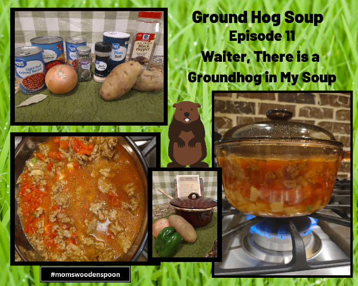 hi this is Kristen and this is Carrie and today we are cooking a recipe from Mary's Memo of course of course October 30th 1978 ooh good year it was a good year it's one day before your what your fifth birthday fifth birthday oh my goodness and the title of the recipe is called groundhog soup ooh I saw a groundhog on my way here to do this today was sitting on the side of the road munching on the grass looking adorps oh my gosh they are so cute they are I watched a video where this man was having his garden just eaten like crazy I've seen this it's the cutest thing ever right it is so his garden is being just destroyed and he can't figure it out so he gets a motion activated camera and he puts it out you guys have probably heard this so cute and so he figures out long story short it's a groundhog oh but I mean it is like right up in the camera oh yes he ends up making a garden just for the groundhog and then he fences off his own garden so the groundhog leaves his alone yeah and lo and behold you know the cutest part of it is that the groundhog comes up right to the camera and just is chomp chomp chomp chomp chomp so cute and brings a friend he actually brings his little wife and then they end up bringing babies so cute it is so so cute he ends up naming them what yes he names uh the the little boy groundhog Chunk Chunk and he had the little wife Nibbles I feel like Pearl would be a good little cutie little groundhog name Chunk and Pearl that is cute yeah yeah no no its Chunk and Nibbles Nibbles is adorable that is I mean because they do and then the babies come and they fight over the food oh my gosh so cute you just want to eat their face off I've heard they're actually tasty I did not mean that by the way grill them up eat their face off now that you mention it I too heard they're kind of like rabbit oh yeah I guess so you know my husband he ate all kinds of wild game his mom would cook up all kinds of things he ate rabbit growing up they had Hasenpfeffer do you remember that from The Bugs Bunny cartoons it was a king and he said cook where's my lunch where's my dinner where's my Hasenpfeffer no you don't remember that no what did they say in the Laverne and Shirley Hasenpfeffer Incorporated oh