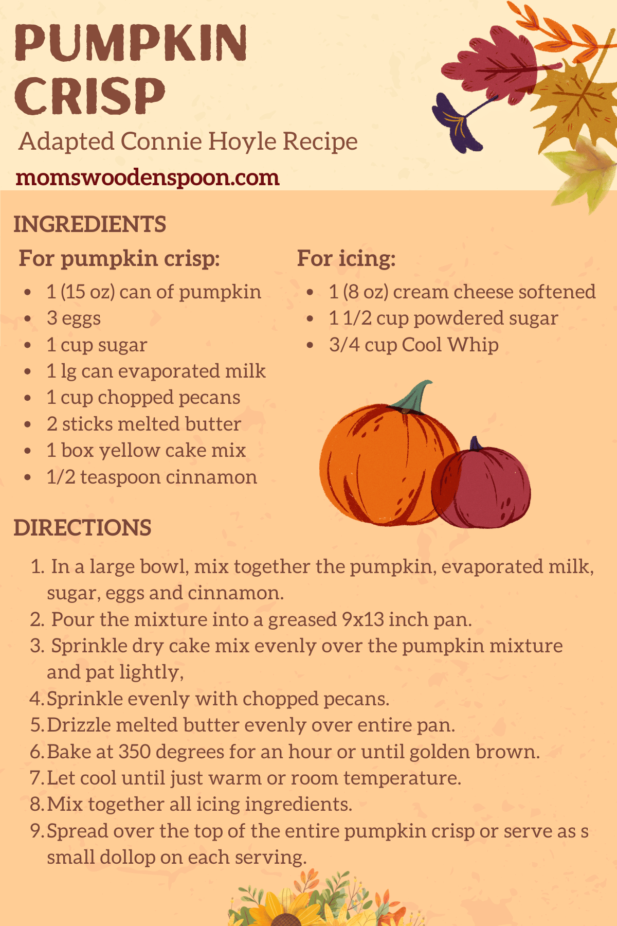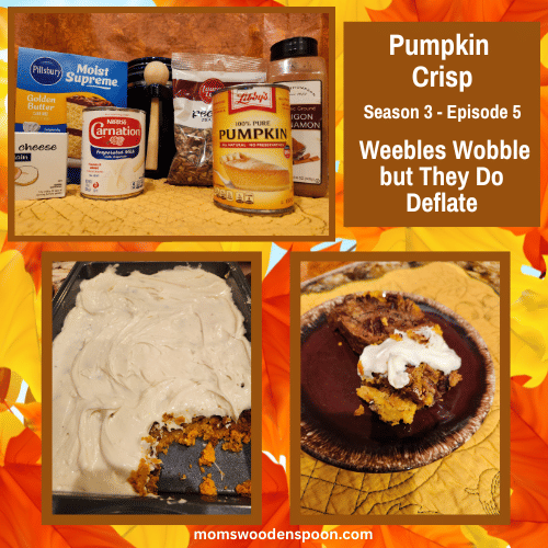 hey Carrie as you know I really love candy corn so what would you say is your favorite fall treat even better than candy corn are the candy pumpkins oh yeah but there's also pumpkin muffins pumpkin pancakes pumpkin pie with a little Cool Whip yeah there's pumpkin scones okay those pumpkin cookies with a cream cheese frosting and little cinnamon yeah yeah pumpkin seeds Okay Okay I I get it um I think you're really going to love today's episode ooh what's in it pumpkin [Music] welcome to Mom's wooden spoon where the recipes are retro and so are your hosts you can say that